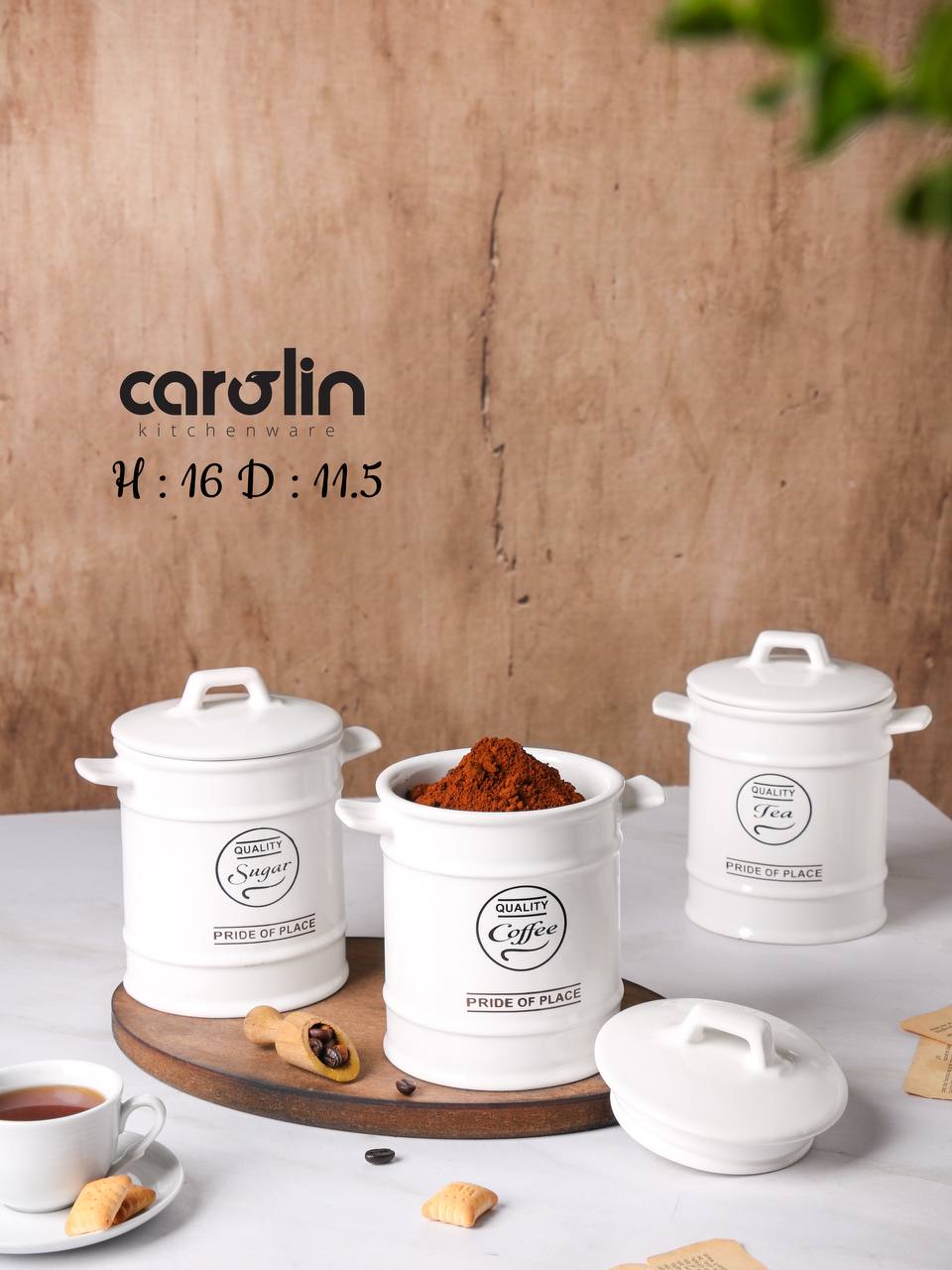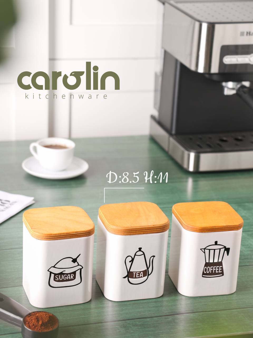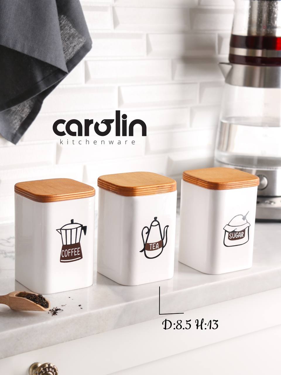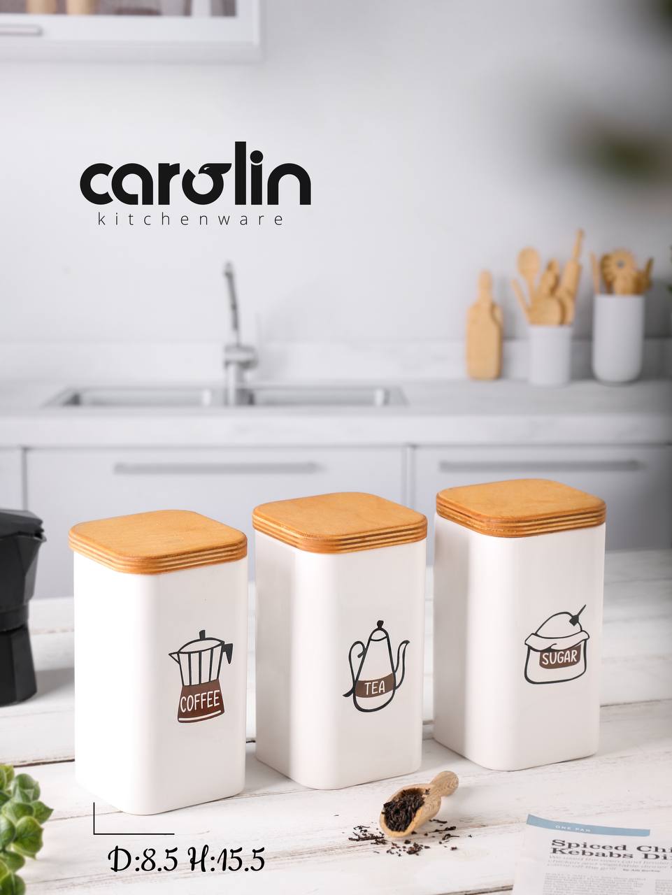 پاسماوری ۲ عددی کارولین، ظروف مقاوم و مناسب نگهداری منظم چای، شکر و ادویه در آشپزخانه است.