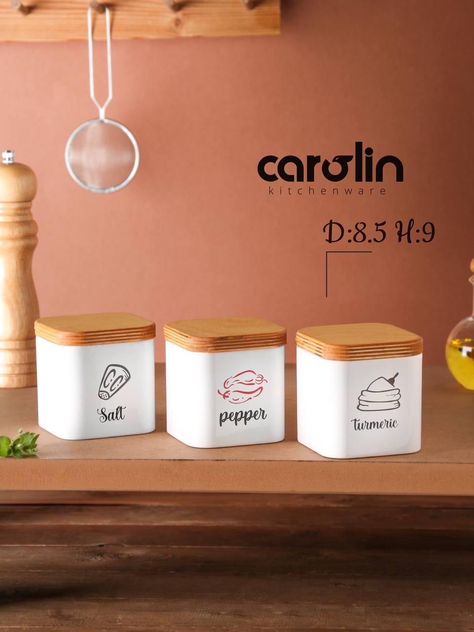 پاسماوری ۳ عددی کارولین، ظروف مقاوم و کاربردی برای نگهداری منظم و تازه چای، شکر، ادویه و خشکبار است.
