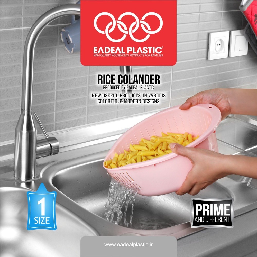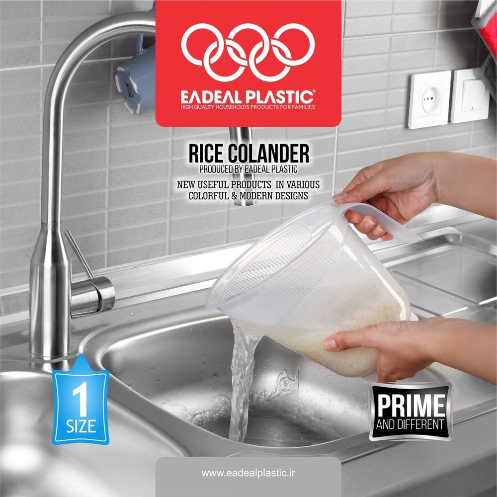 برنجشوی لیانا هوم کت، پلاستیکی مقاوم با سبد توری و طراحی ارگونومیک برای شستوشوی آسان و سریع برنج و غلات است.