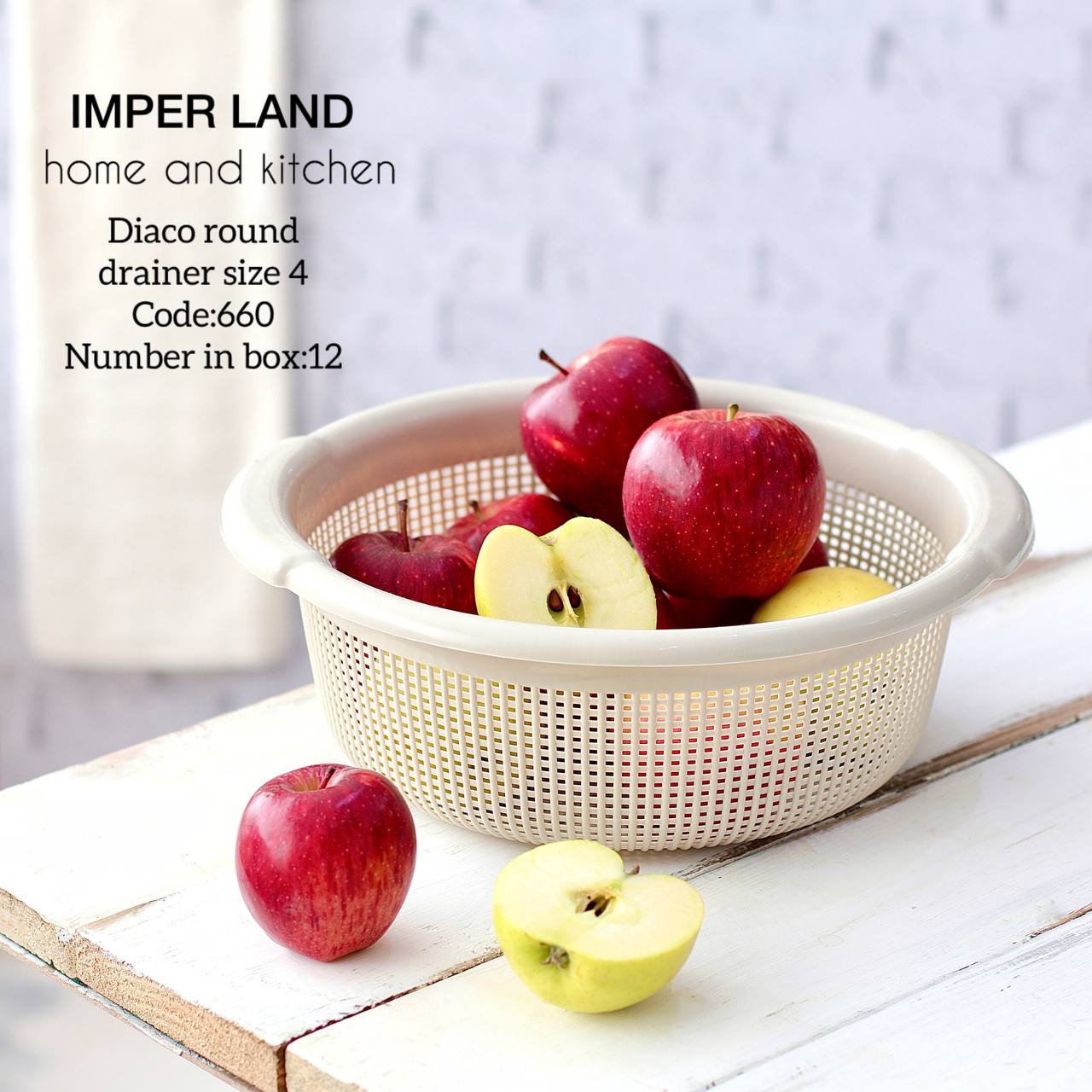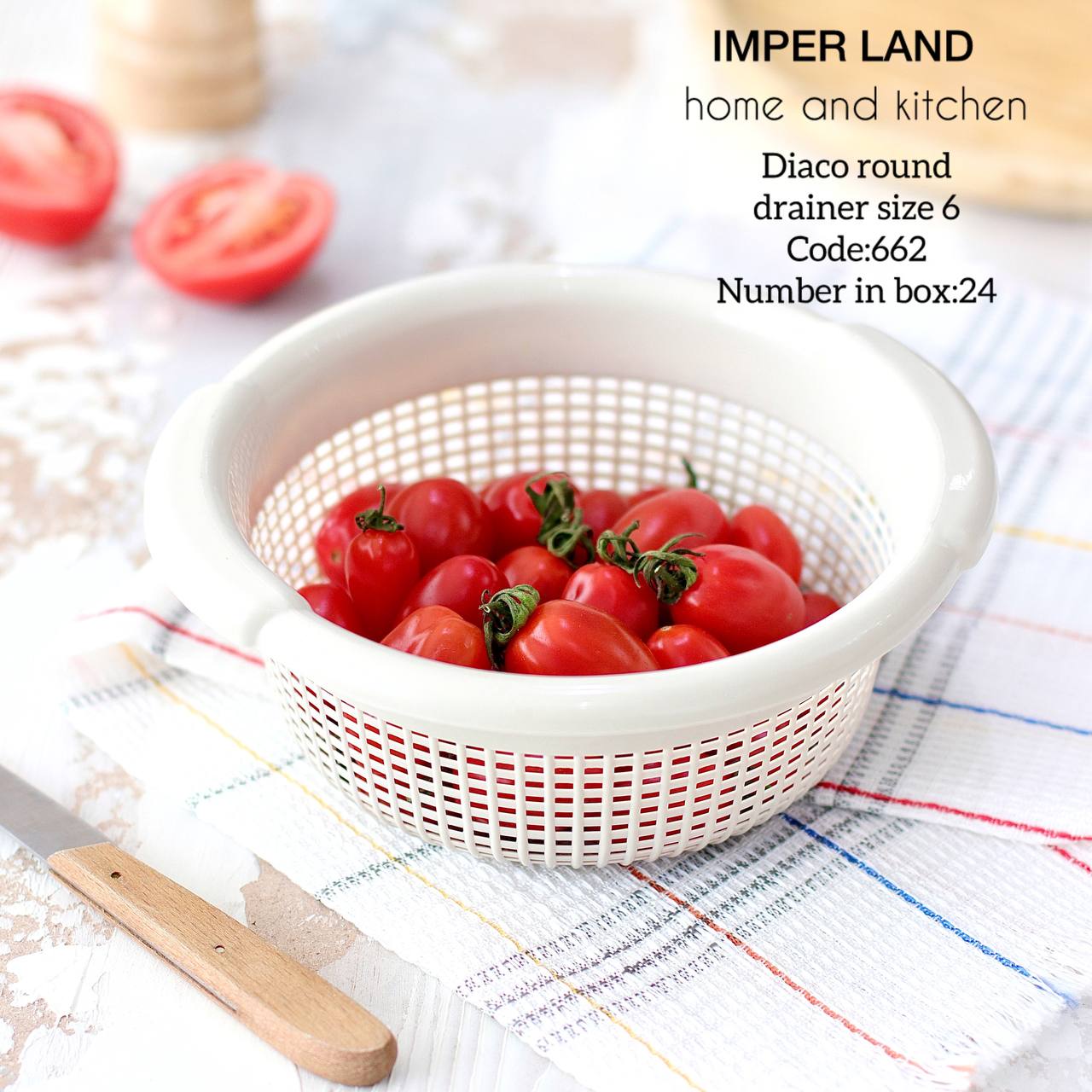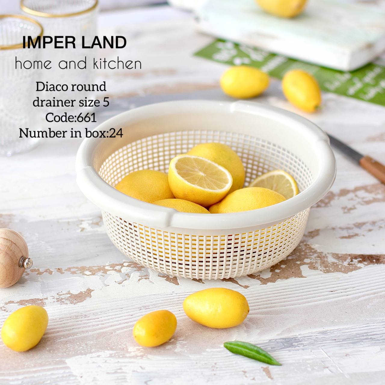 آبکش گرد دیاکو سایز ۶ امپرلند بسیار جادار، مقاوم و مناسب برای شستوشو و آبگیری حجم زیاد مواد غذایی است.