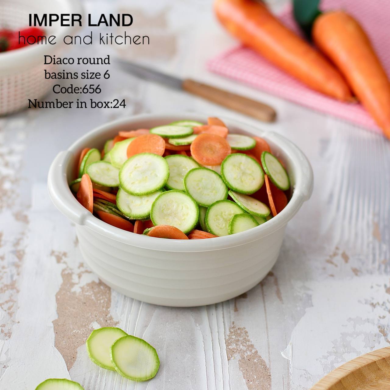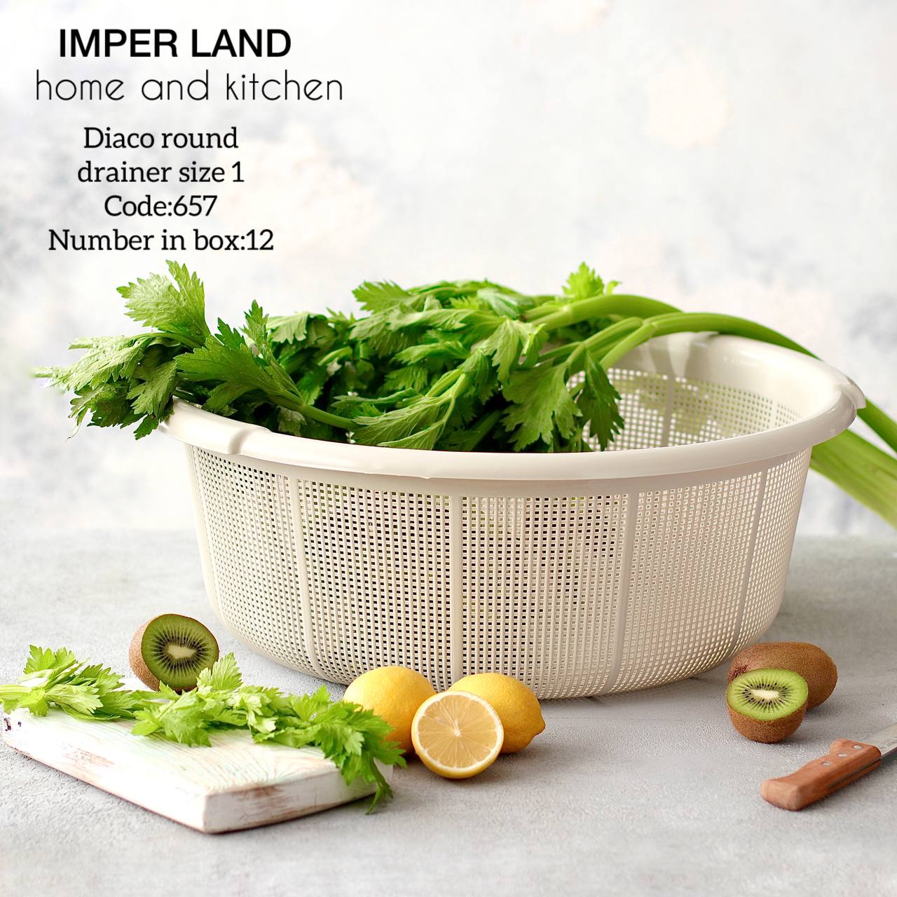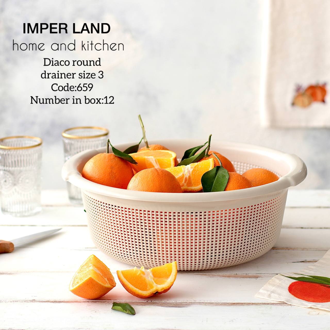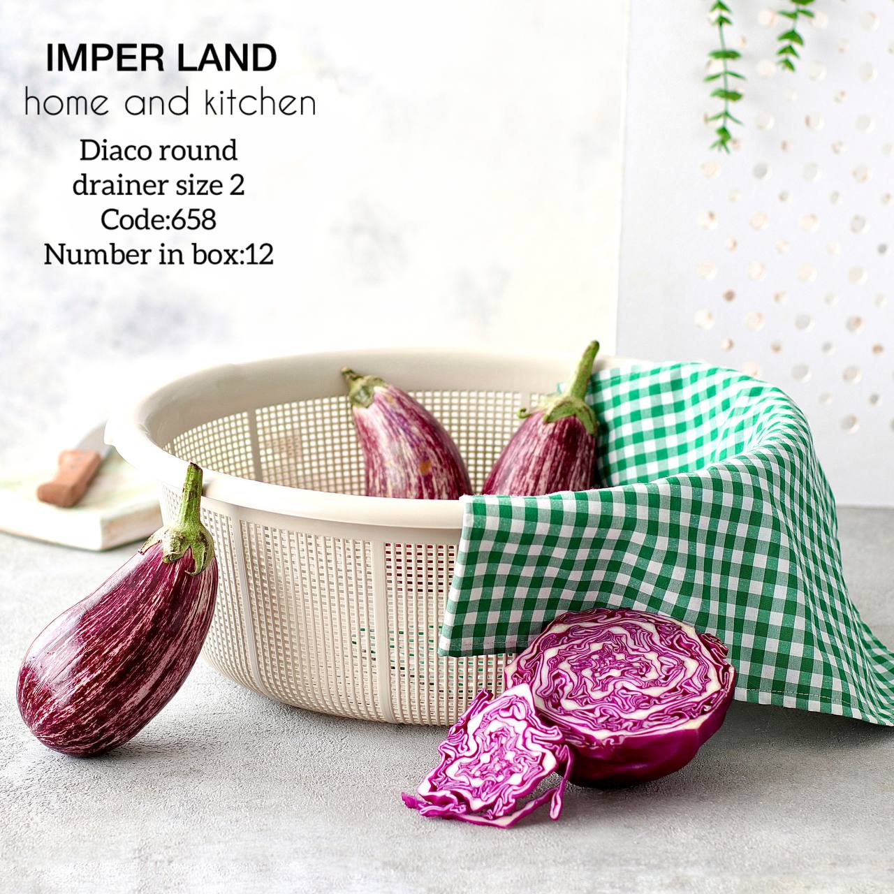 آبکش گرد دیاکو سایز ۶ امپرلند بسیار جادار، مقاوم و مناسب برای شستوشو و آبگیری حجم زیاد مواد غذایی است.
