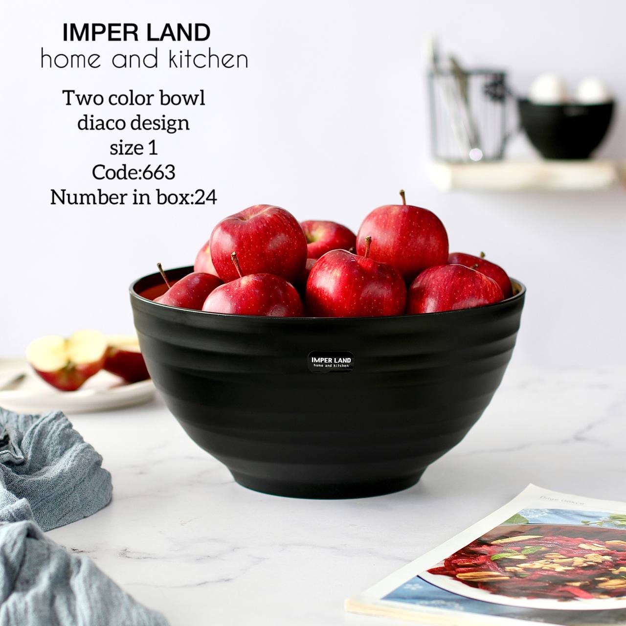 کاسه دورنگ دیاکو سایز ۳ امپرلند بزرگ، سبک و زیبا است و برای سرو و نگهداری مواد غذایی با حجم متوسط مناسب است.