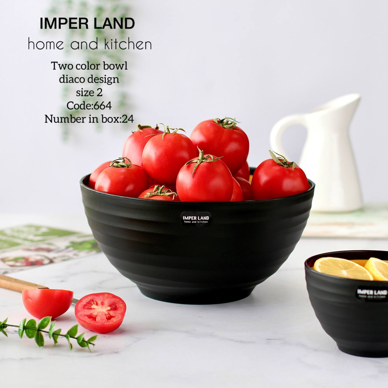 کاسه دورنگ دیاکو سایز ۲ امپرلند جادار، سبک و زیباست که برای سرو و نگهداری مواد غذایی مختلف کاربرد دارد.