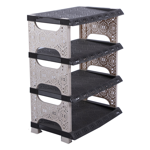 جاکفشی طرحدار جاسمین ۴ طبقه هوم کت سبک، جادار و زیباست و برای نظمدهی انواع کفش در ورودی منزل یا کمد کاربرد دارد.