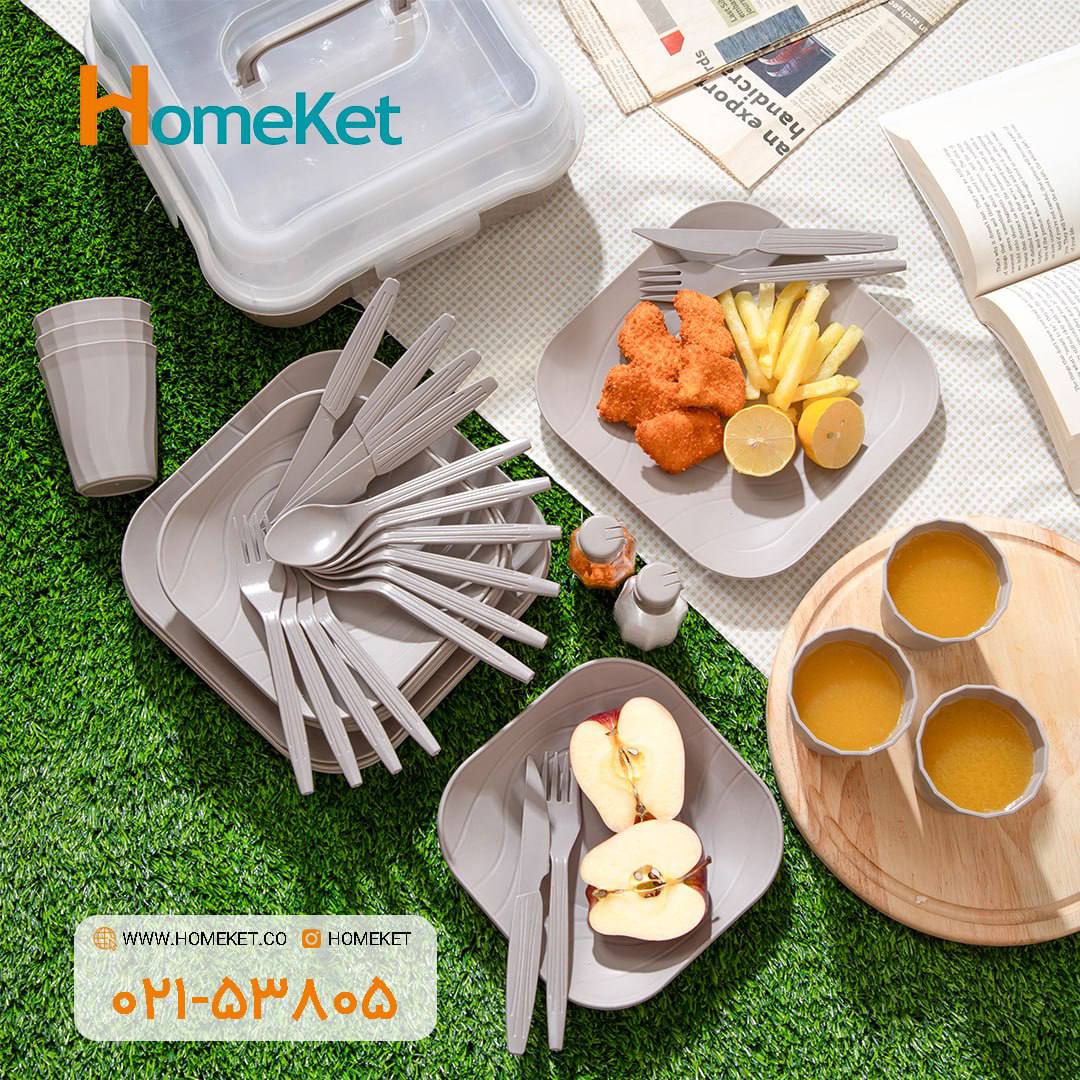 سبد پیک نیک هوم کت تهیه شده از بهترین مواد اولیه پلاستیکی و دارای دو دسته می باشد. قابل استفاده برای گردش، مسافرت و پیک نیک
