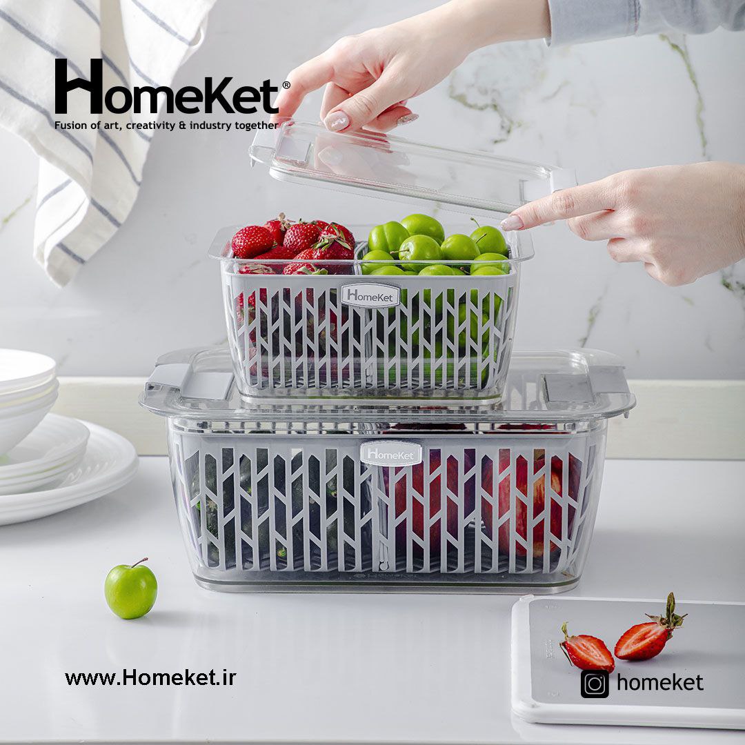 باکس میوه متوسط نیکا هوم کت، مقاوم و سبک با طراحی مشبک، مناسب نگهداری و تهویه میوهها در فضاهای کوچک و استفاده روزمره است.