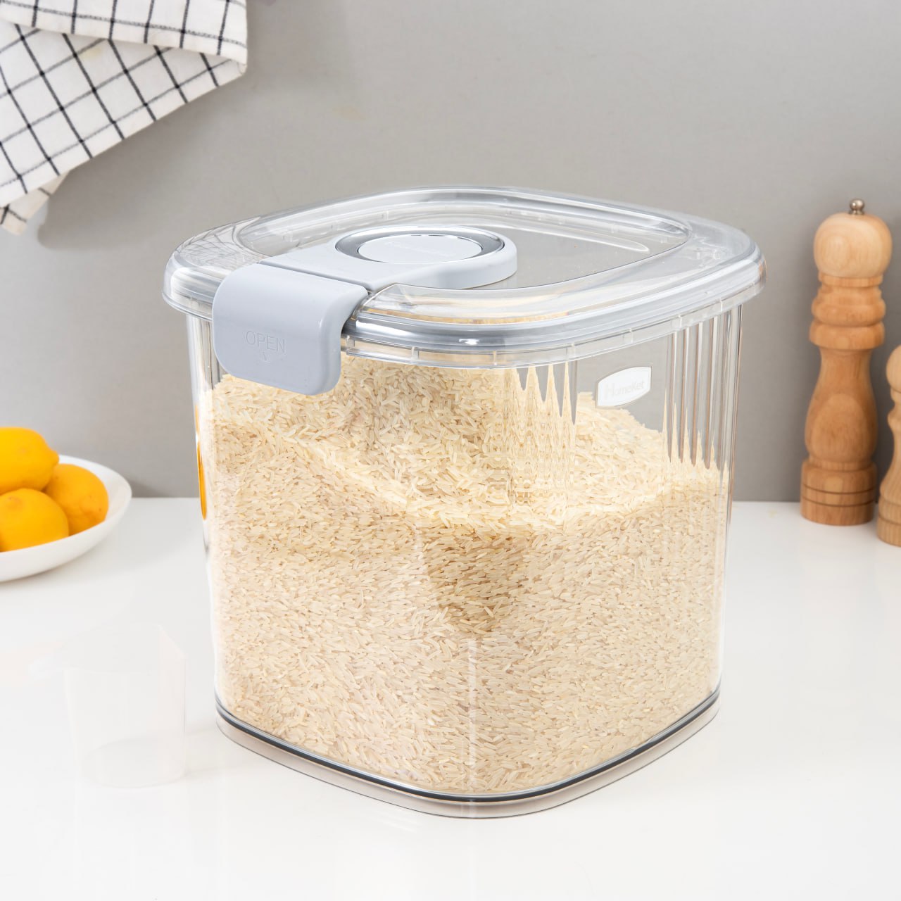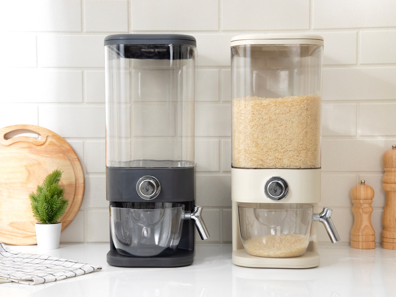 جا برنجی اتومات لیان هوم کت، مقاوم و بهداشتی با خروجی پیمانهدار، مناسب نگهداری منظم و آسان برنج در آشپزخانه است.