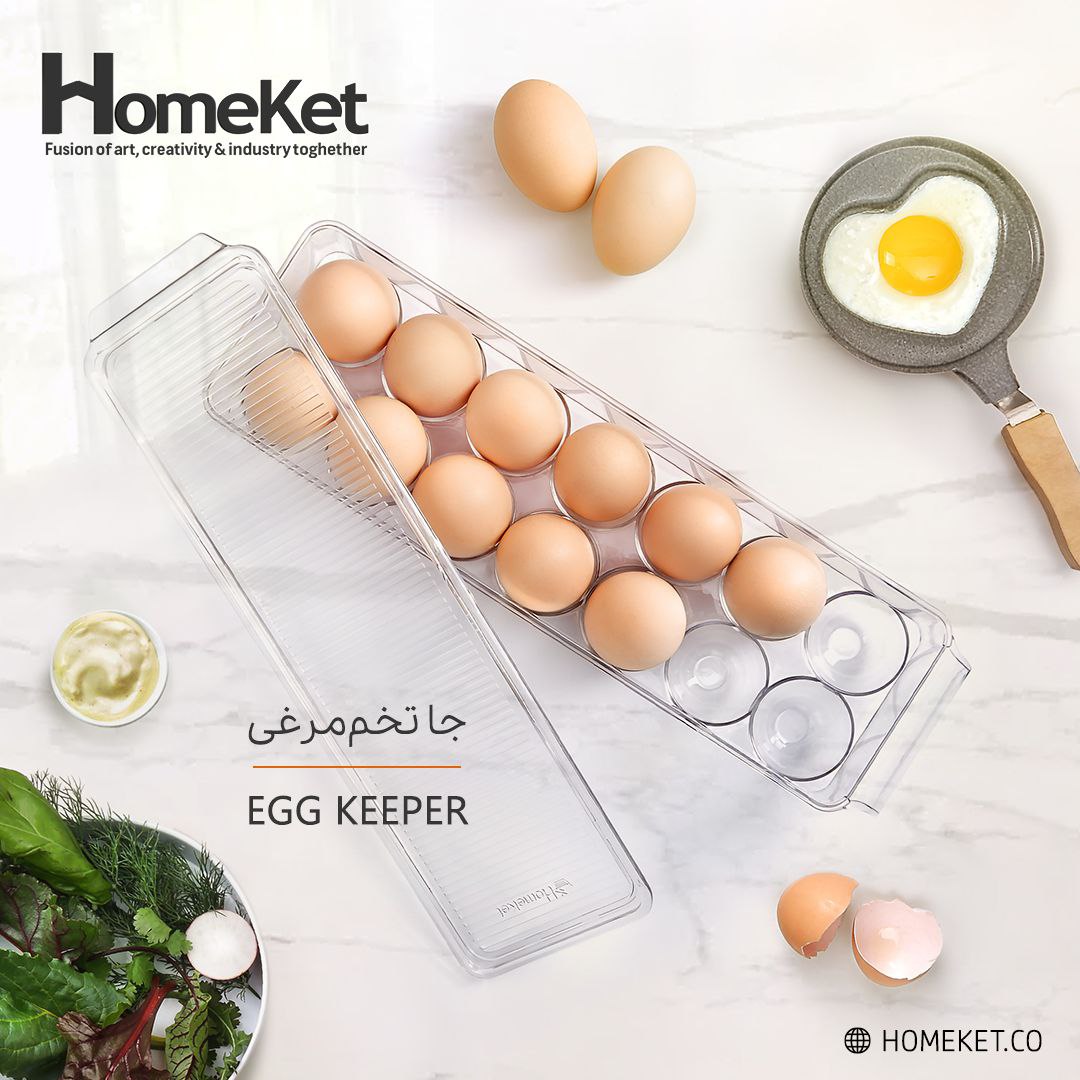 جا تخممرغی شفاف هوم کت، مقاوم و دربدار با طراحی شفاف، مناسب نگهداری منظم و ایمن تخممرغ در یخچال است.