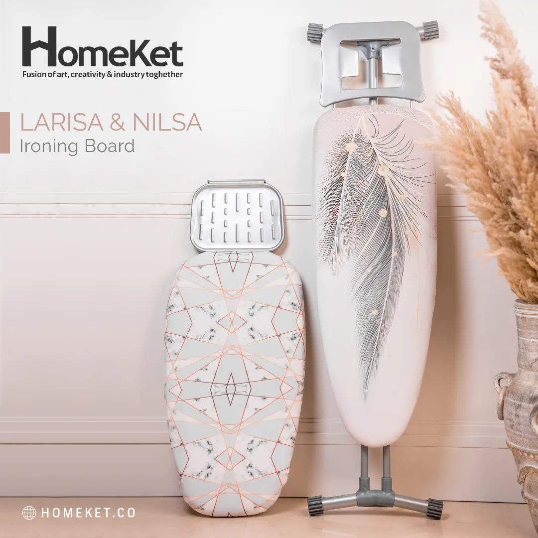 میز اتو پایه بلند لاریسا هوم کت با طراحی مستحکم، روکش نسوز و قابلیت جمعشدن، مناسب اتوکشی ایستاده و راحت در منزل است.