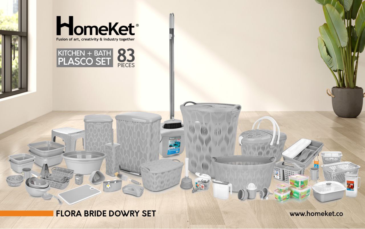 سرویس جهیزیه ۸۳ پارچه فلورا هوم کت، مجموعهای کامل و زیبا با طراحی هماهنگ و جنس باکیفیت است که تمام نیازهای اولیه آشپزخانه را برطرف میکند.