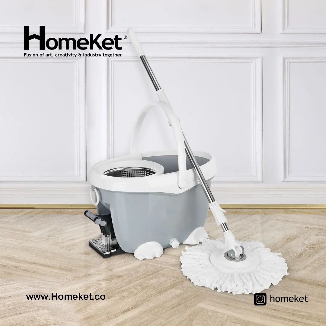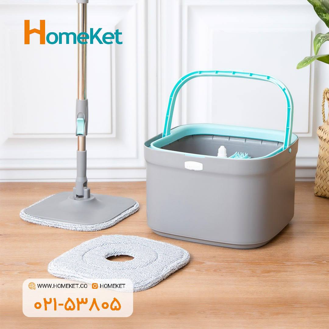 تی چرخشی پدالدار هوم کت با سطل مقاوم، سری میکروفایبر و سیستم آبگیری پدالی، نظافتی راحت، سریع و بدون دخالت دست را فراهم میکند.