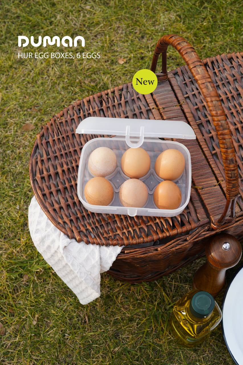 باکس تخممرغ ۶ عددی دومان با طراحی مقاوم و درب قفلدار، مناسب نگهداری منظم و حمل ایمن تخممرغ در یخچال یا سفر است.